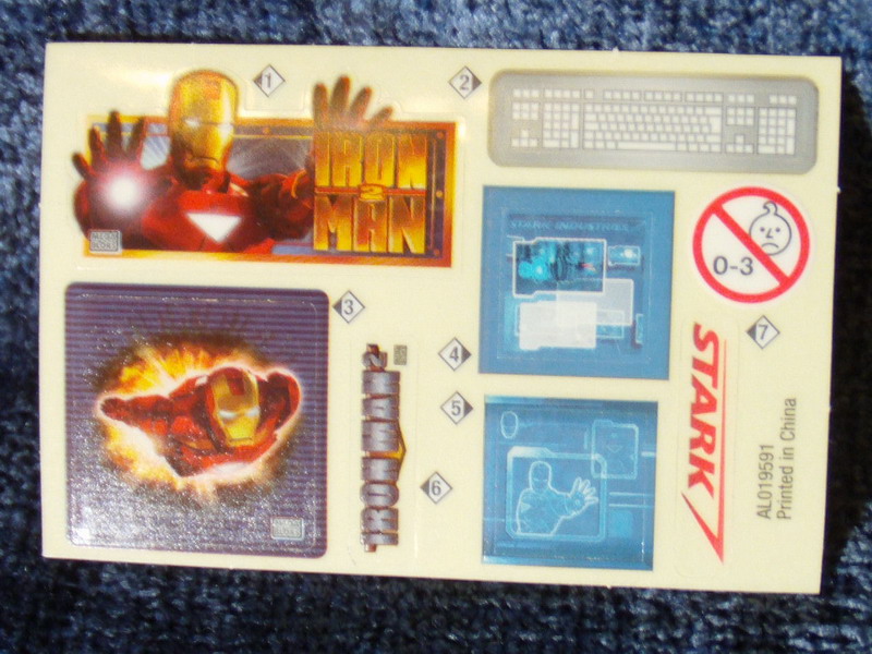 The box is made with a metallic sheen that invokes the metallic nature of the Iron Man armor. The plastic bust and large baseplate are visible on the outside of the box, and tucked inside are three plastic bags. The first bag contains the instruction book and sticker sheet while the other two bags contain the remainder of the blocks. The tiniest pieces are bagged within the bags to help keep them from getting completely lost while building the playset.