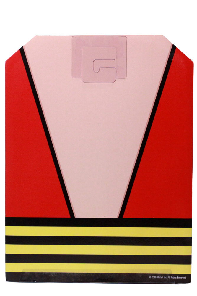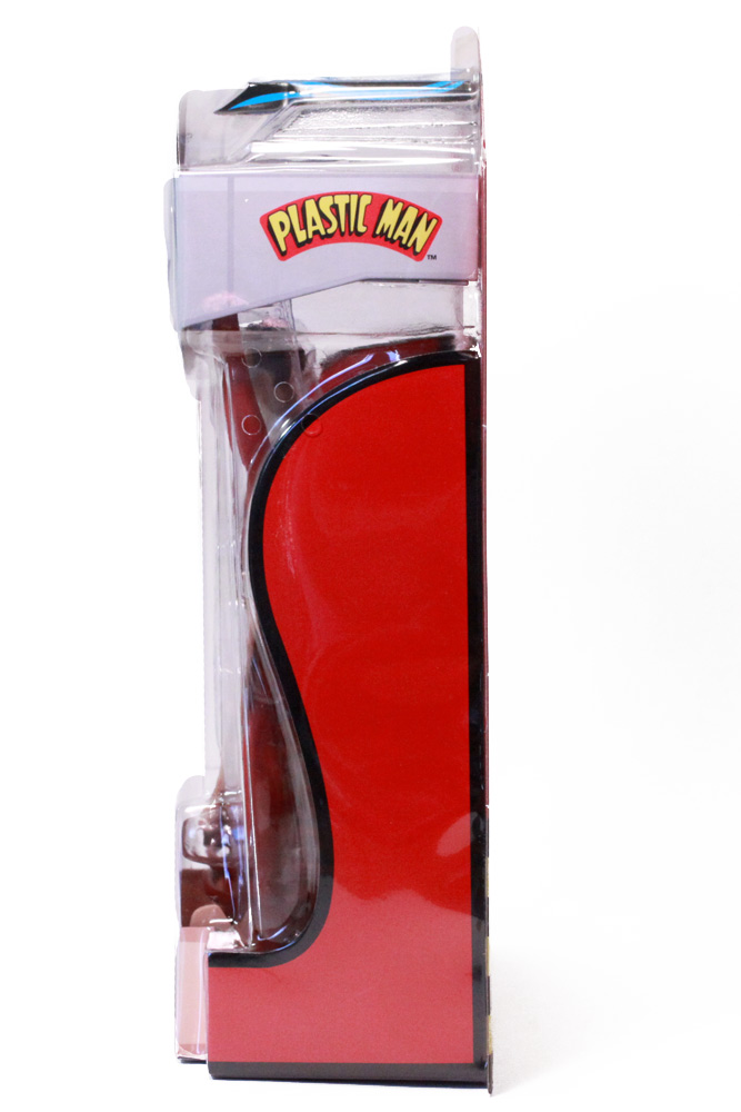 Plastic Man the action figure comes on the usual card and bubble much like the other DC Universe Classics but its design is entirely unique to him. The familiar goggles are heavily featured on the bubble while the card backing itself resembles his outfit and belt. Protecting the card and bubble is a unique outer shipper box with the "75 Years of DC" design familiar to those collecting the line now. The bonus SDCC accessory comes in a small clear baggy by itself, not different than a McDonald's Happy Meal toy.