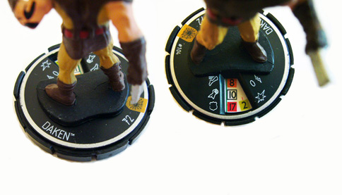 In game terms, Daken #104 is a powerful attacker at 72 points (increased from Daken #031’s 63 point cost). Overall he has similar numbers except in the Speed slot, where the Limited Edition figure is faster across the board. While the uncommon version has a pretty straightforward set of powers, Daken #104 brings a lot of interesting options to the table. He starts with Leap/Climb, a Special Power increasing damage against figures with action tokens, Super Senses, and Exploit Weakness. Down the dial the villain switches out Mind Control, Blades/Claws/Fangs, Regeneration, and Close Combat Expert. On top of all that, Daken has an awesome trait that prevents opposing characters within 6 squares from using Shape Change! So not only does he look cool, but Daken will definitely be a force to be reckoned with on the battlefield.