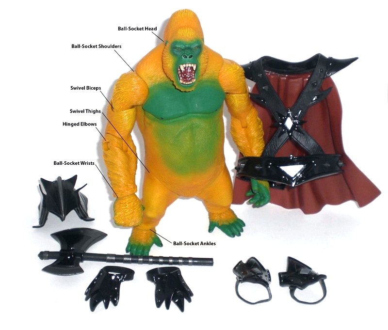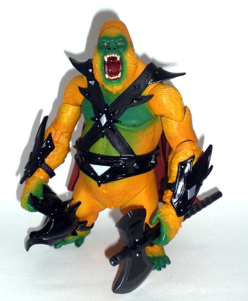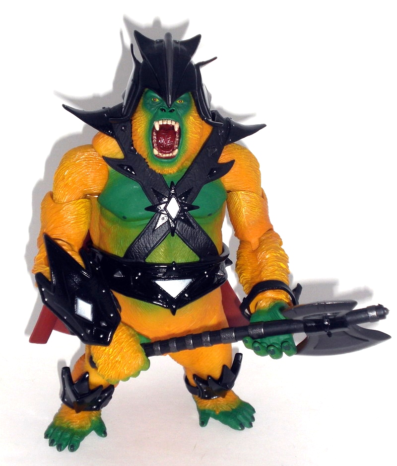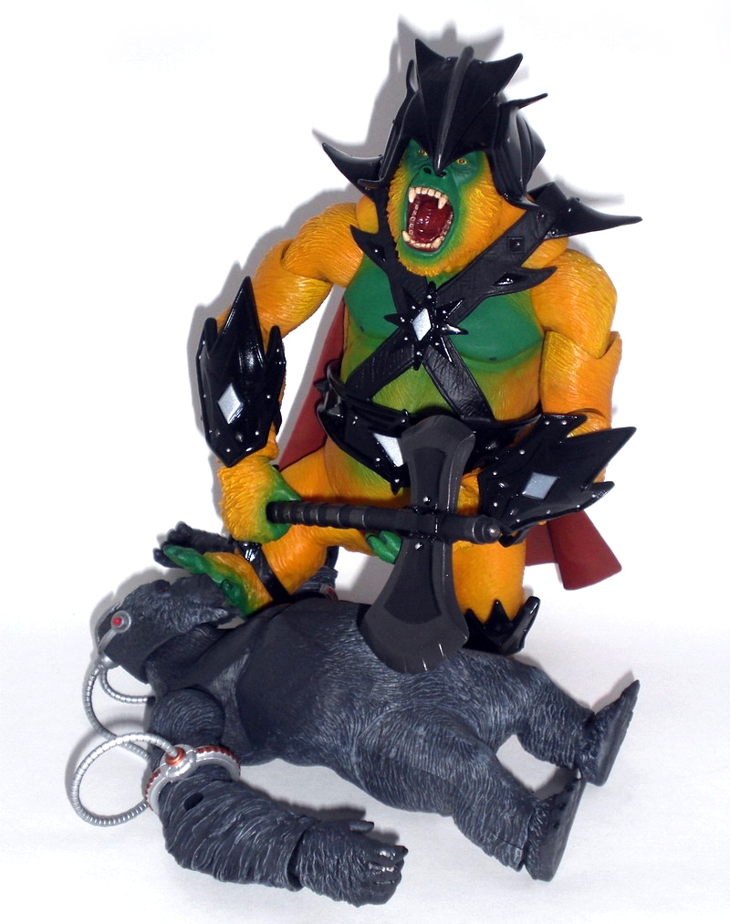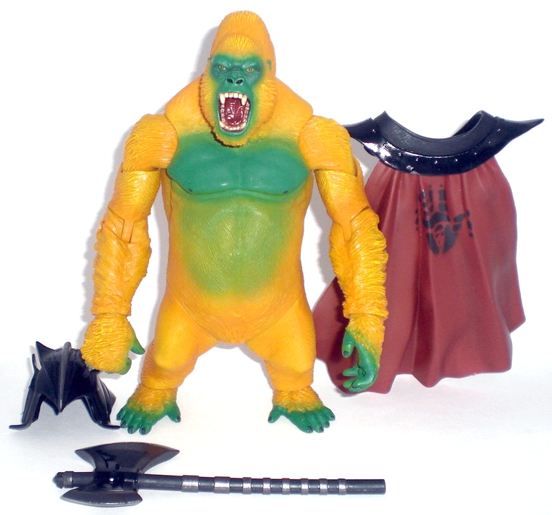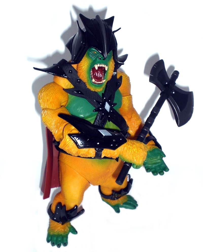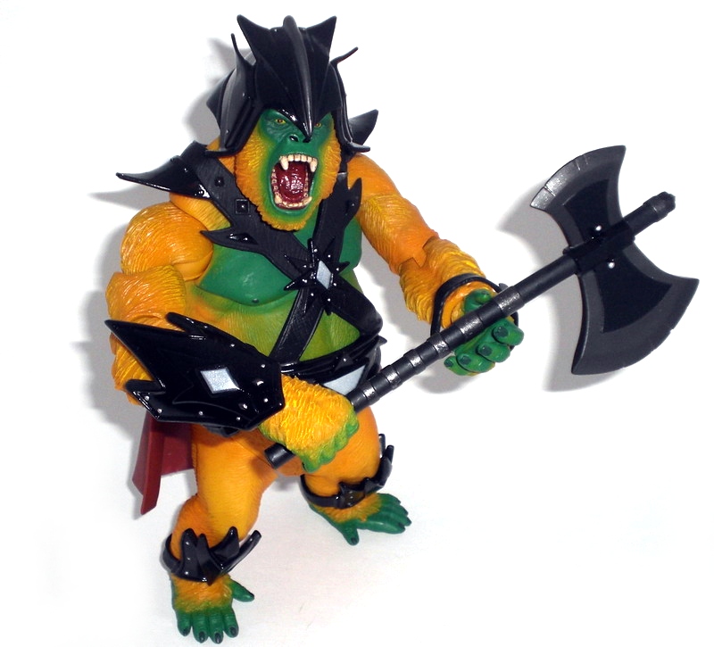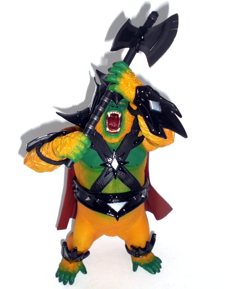 Although this figure is simply a giant gorilla, the Horsemen have once again demonstrated their unmatched creativity and artistic ability to convert the most standard character into an awesome looking figure. The ferocious ape is dressed for war with his unique removable battle armor and helmet. The figure also has a large flowing cape with harness that can be easily removed. Gygor also includes a massive two-handed battle axe that easily fits in both of his hands.