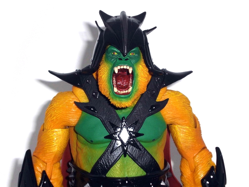 While the figure can be placed in several great looking poses, it is very difficult to display Gygor in any real gorilla poses due to the limited articulation in his legs (no knee joints). So far the only beast in this collection with an amazing range of motion and versatility has been Battle Cat. It seems to me that as the creatures get larger in scale, articulation is being sacrificed to keep the cost of the figure down. Regardless, I would have preferred to pay $40 for this piece if it had better articulated legs. Despite this minor issue, Gygor's existing joints work well. All the joints are nice and tight, which go a long way in helping to support this massive figure on display.