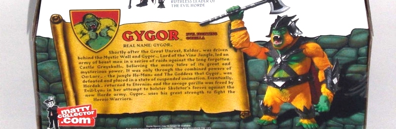 PACKAGING: Gygor comes packaged within a large window-box that features all the standard MOTUC design elements seen on previous figure releases.