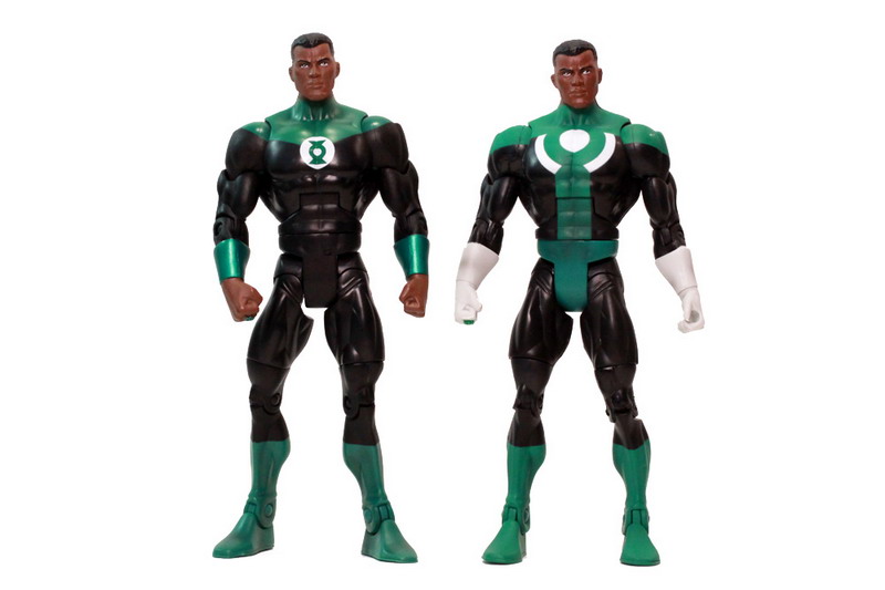 John Stewart is another very popular Green Lantern, and it's about time he's getting his due. John was part of the recent Series 11 in his standard GL uniform (with small Lantern symbol on a primarily black background). This repaint of that figure captures another specific moment, his unique style during the Mosaic series. The paint scheme is quite a bit different, with a larger green collar, huge green and white chest logo, a descending green torso stripe, green trunks, and long white gloves.