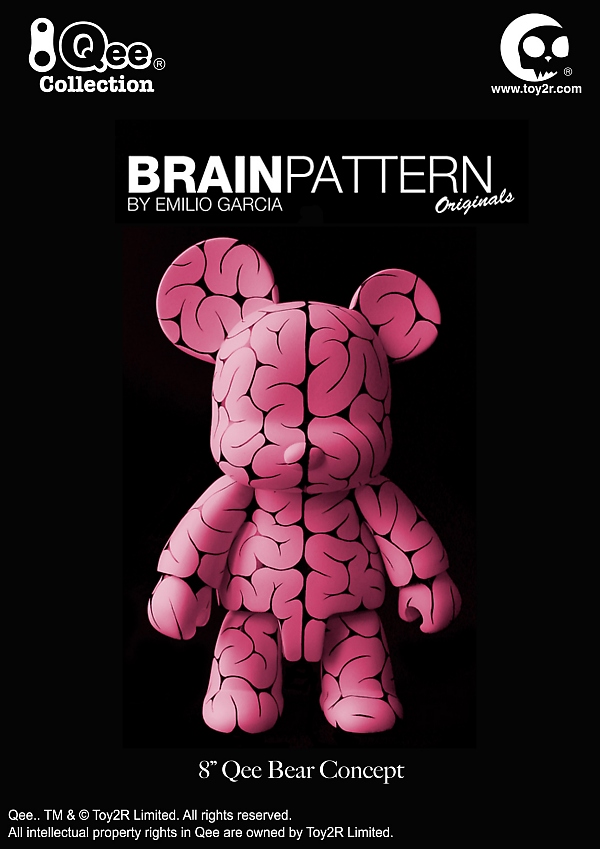 From Jumping Brain creator Emilio Garcia is the Brain Pattern Qee Bear. Emilio created a customized Qee for an upcoming DIY Qee show but due to the response of his Jumping Brain collection and the peeks at his custom - Toy2R is considering creating it as a limited edition production piece (500 pieces worldwide).