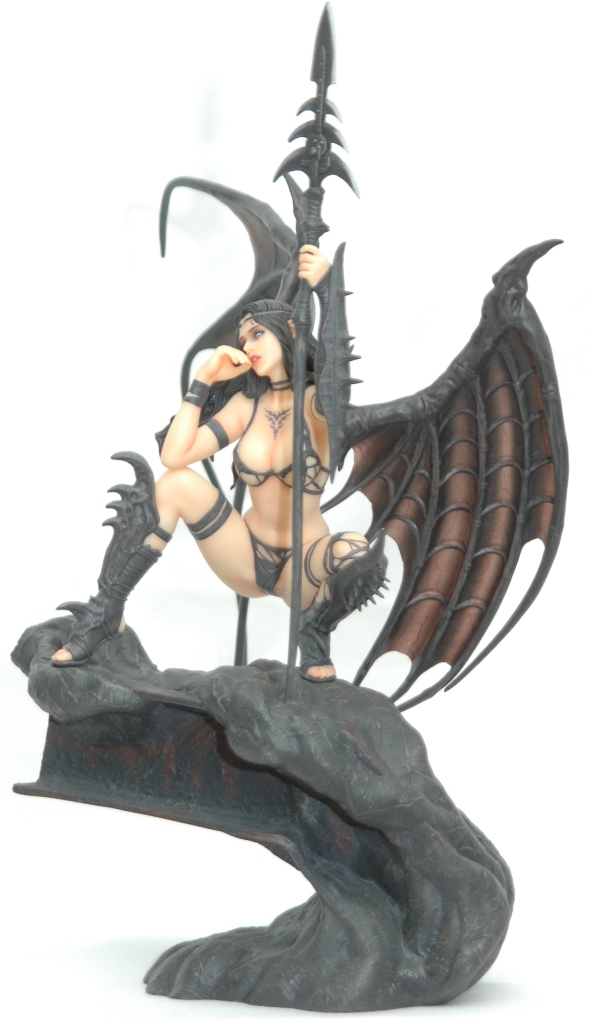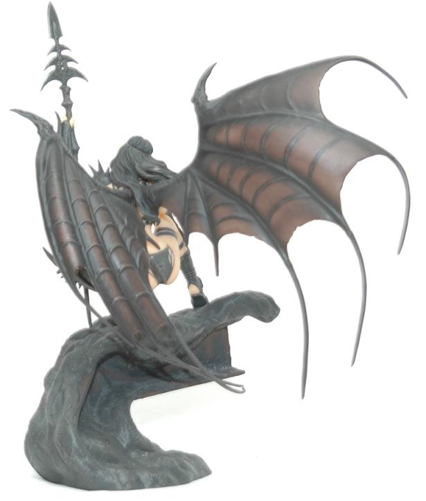 Obviously the most eye-catching part of the statue is the wings, which span over 12" and truly make this statue worthy of display and attention. The veined, monstrous bat-like appendages give the serene character an almost sinister appearance, masking her passivity. However, she is armed with a wicked-looking spear, making one consider this peaceful looking fairy isn't as harmless as her face would first appear...