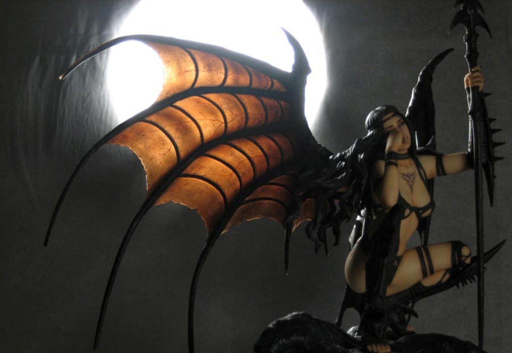 Something well worth mentioning: because of the polyresin, the character's wings have a translucent appearance when properly backlit, giving this statue a gorgeous look that's not only unique, but one of a kind (above).
