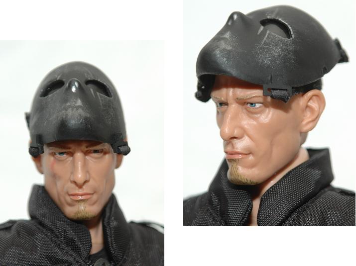 Considering the price, it's hard to find a figure with this much included. Fully accessorized and ready for action, Tyrus looks the part of the "celebrity" warrior, shades and bluetooth for the less intense action as well as face shield for when the fighting gets rough (above). One quick comment about the face shield: while the look is cool, getting it on the head was difficult and I actually had two of the elastic bands come unglued from the mask when trying to put it on. This required a simple repair with glue, but it is worth noting.