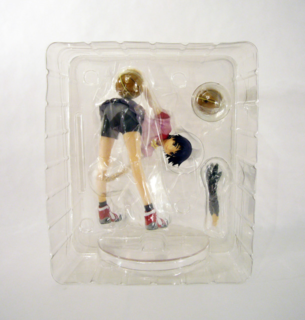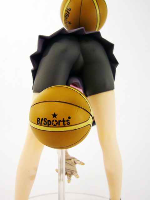 The stand is absolutely necessary to display the figure; she won’t stand up by herself. The basketballs are lifelike though solid plastic, decorated in brown and yellow with “B/Sports” logos. The statue works fully in the round, though there are certain angles that are more attractive than others. While it’s certainly not obscene, her pose is a little suggestive and you might want to rotate her so that she’s not exactly bending over in your face. You can even make a simple diorama out of the package insert, a four-panel interior scene!