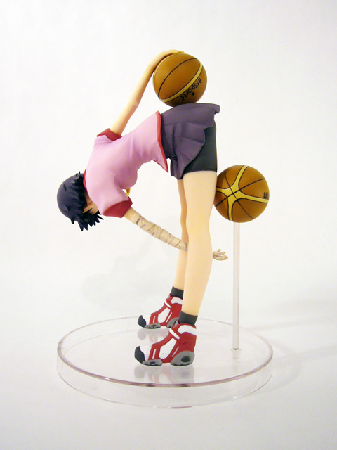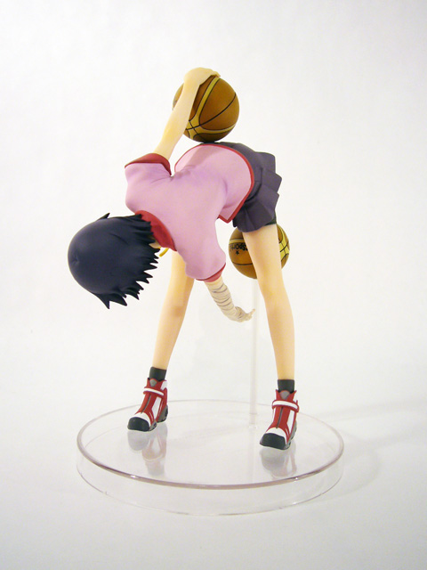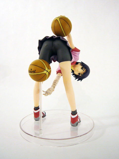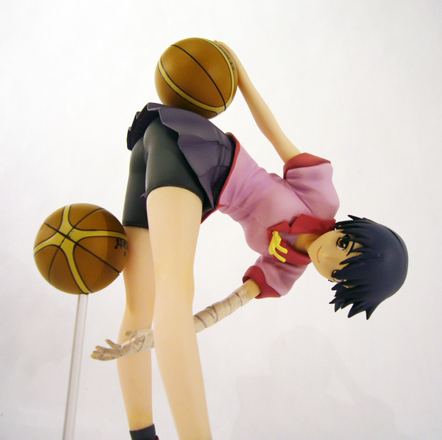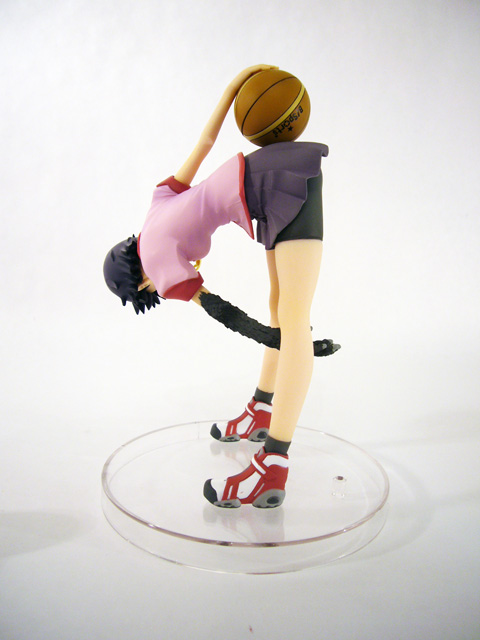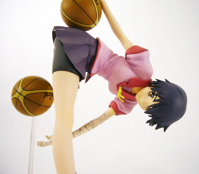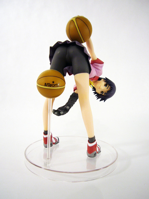 You’ll find Kanbaru comes in just a few parts, and she’s easy to assemble. Plug the posts on the display base into her feet and you’re ready to go! Of course, you can go further by adding the second basketball (on its own dedicated post) to complete the scene. Kanbaru bends over at the waist with her legs straight, tossing a ball between her legs and holding another over her back. It’s definitely an athletic stance, made all the more impressive by her slim physique.