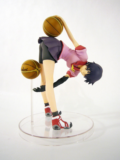Kanbaru is a not your usual girly and buxom anime girl. Athletic and into sports, Mr. Suruga was a track star who tried to use a mystical monkey’s paw to increase her speed. The plan backfired when the paw was revealed to be a demon in disguise, and it subsequently grafted itself to her body. Living with the constant reminder of her folly, Kanbaru is a somewhat tortured soul. A self-professed lesbian and pervert, the girl moved on to basketball, and that’s exactly what she’s playing in this iconic representation! At approximately 6 inches tall (1/8th scale), Kanbaru shows off her mad skills in a complicated move involving twin basketballs.