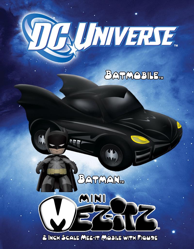 In addition, the first Mez-Itz vehicle will see release this July with Batman and his Batmobile. The 2" Batman can fit inside this famous car (6 inches long) and still have room for a second passenger. The Batmobile features a detailed cockpit, and has a convertible hardtop.
