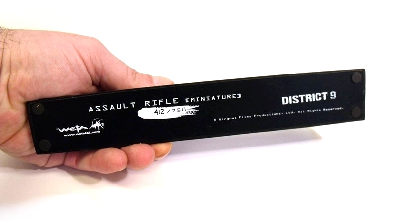 The District 9 Minature Assault Rifle is now shipping and in-stock through Weta's online store priced at $99. It is limited to 750 pieces.