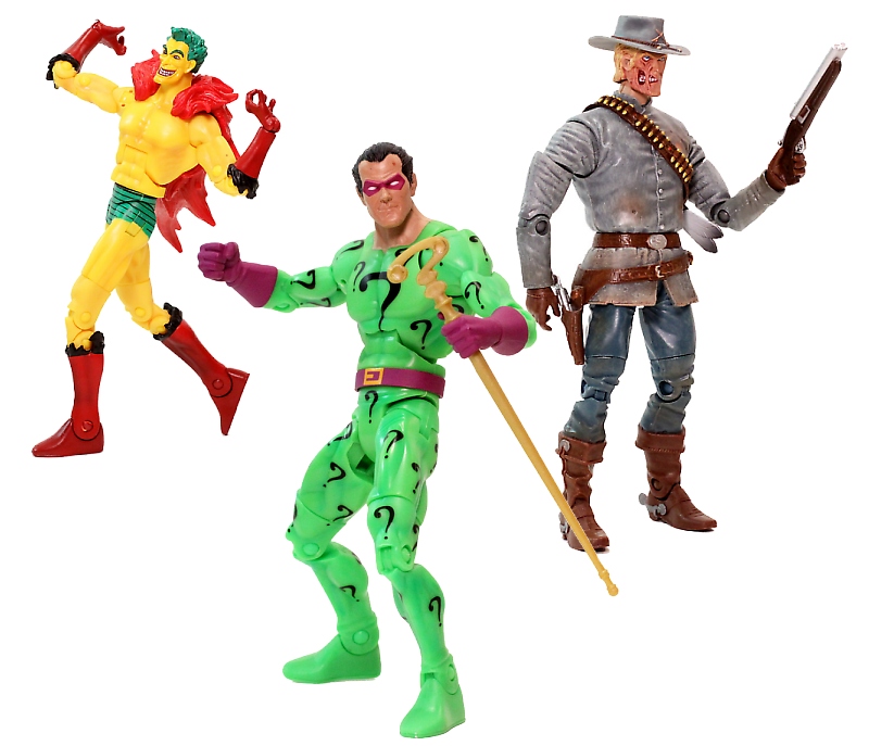 The Creeper comes with an arm of Bane and nothing else while The Riddler at least comes with his signature question marked staff.