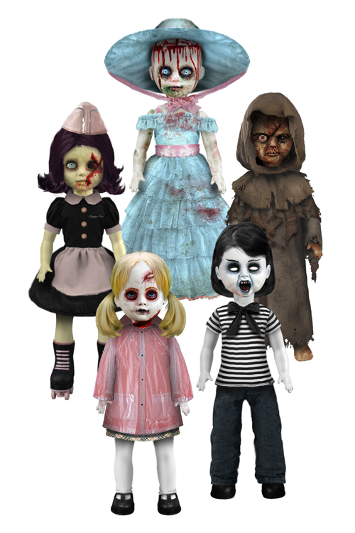 Mezco Toyz provides a look at their latest assortment of Living Dead Dolls - Series 22 - new ZOMBIE Living Dead Dolls! Slated to walk amongst the living this September, LDD Series 22 features (clockwise from the top):