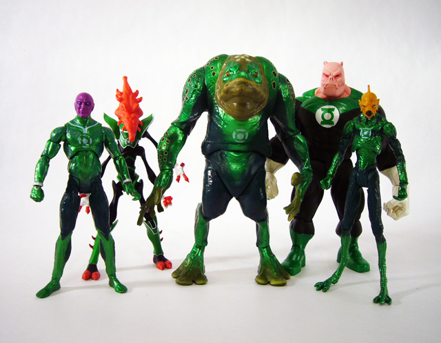 On Monday we started small with the Guardians of the Universe two-pack (read it HERE), and today we’re going the other direction to the massive Movie Masters Green Man figure! One of the coolest things about Green Lantern going all the way back to Hal Jordan’s introduction in 1959 is the science fiction element. As “space cops,” the Green Lantern Corps isn’t made up solely of humans, and often its members reach into the non-humanoid and beyond. From the vegetable to the mineral and even a sentient smallpox virus and mathematical equation, the alien species introduced in the GL stories are incredibly varied. Fortunately, the upcoming Green Lantern film will continue the tradition of including cool aliens. A number of them have been revealed already, most notably in the latest trailer that shows a wide range of alien beings at a Green Lantern convocation. One of those is the hero known as Green Man.