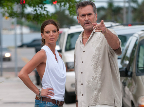 For those unfamiliar with Burn Notice, you are missing out on one of cable television's most funny and engaging spy dramas. Airing on the USA Network, the series appeals to this viewer mainly because of its extremely strong and well balanced cast. You have Jeffrey Donovan starring as Michael Westen, a smooth operator that comes across as half James Bond, half MacGyver. Then there's the always fun to watch love interest Gabrielle Anwar as Fiona Glenanne, whose passion for all things explosive ignite her already sizzling sex appeal. The third member of the team is Bruce Campbell as Sam Axe, a former Navy SEAL who has a thing or two for the ladies... and Mojitos. It's the Evil Dead star's most enjoyable role to date - a part seemingly tailor-made for him - like a hand in chainsaw, err glove. Lastly we have the charming Sharon Gless as Madeline Westen, Michael's protective chain-smoking mom. She's more in the loop in Season 4 and a much cooler character because of it.