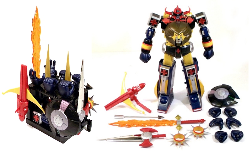 Next up we have Beralios, the mechanized lion that inspired another Super Robot legend, Voltron. Here we only get one lion, but the gist is the same as the five that comprise the Lion Force. With its opening and closing mouth and attachable back blaster, Beralios is a really fun toy on its own. Heck, all three of Daltanious' modes are great fun. It's quite the dilemma deciding on how to display these - individually or combined?