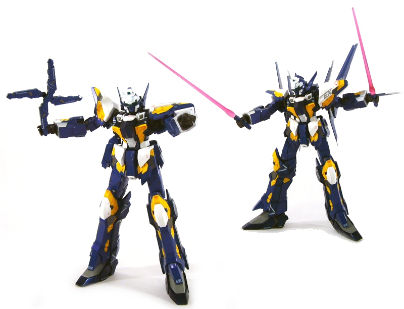 The Exbein is a relatively new robot, first appearing in the 2010 anime Super Robot Wars Original Generation: the Inspector. It is based on the Real Robots “Huckebein” models (themselves based on Gundams), which gives it a strongly humanoid look. It’s no generic robot, though, with plenty of unique details and a cool color scheme that stands out from a lot of its contemporaries. Standing about 6 inches tall (standard for the Composite Ver. Ka line), the Exbein has layered armor plating with scale-like textures, long lean limbs, and a cool head design with goggles, crest, and side-mounted fins. Of course, it also comes with amazing accessories that only add to the overall effect!