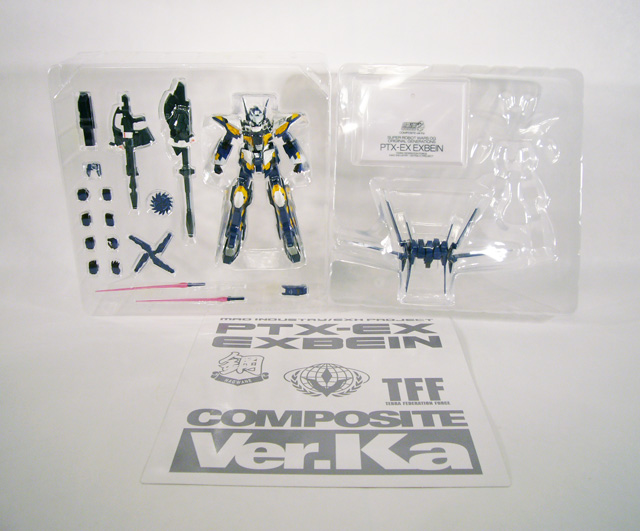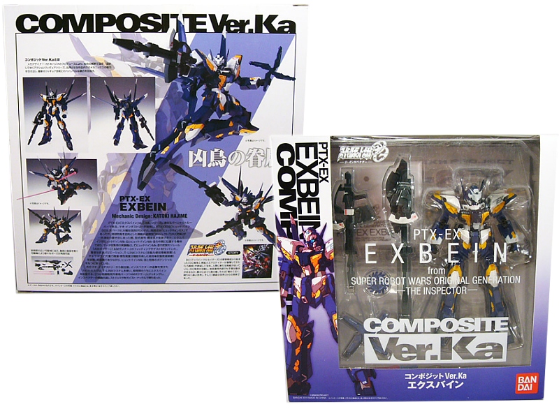 Bandai’s Composite Ver. Ka series has only been around for a year or so, but it’s already garnering a lot of attention in the robot figure world. With great selections from anime and video games partnered with high quality parts and excellent sculpts and articulation, the line has it all. Descended from the Gundam Fix Figuration series, Ver. Ka is the brainchild of Hajime Katoki, the mecha designer for Gundam, Super Robot Wars, and many more. The first year of Ver. Ka brought fans the Lancelot Albion from CODE GEASS, Gurren Lagann, and the Temjin from SEGA’s Cyber Troopers Virtual-On (check out our review HERE). This year there are already four releases including what might be the coolest one yet: PTX-EX Exbein from Super Robot Wars!