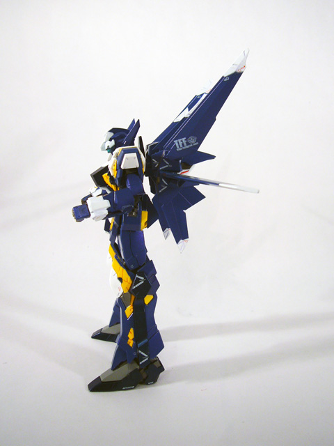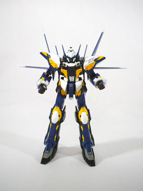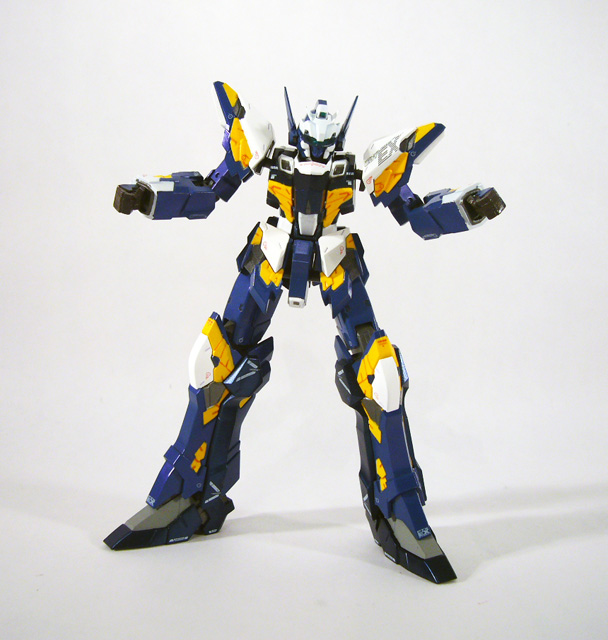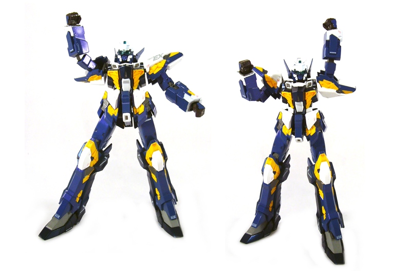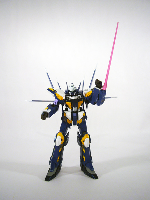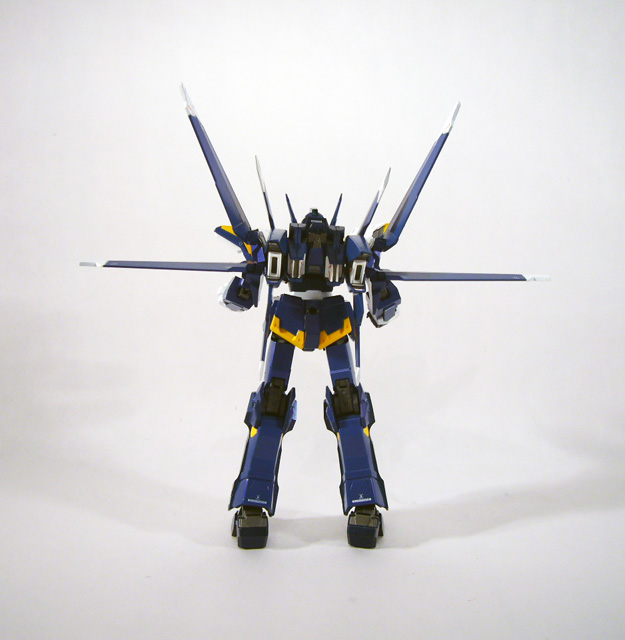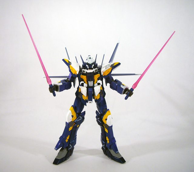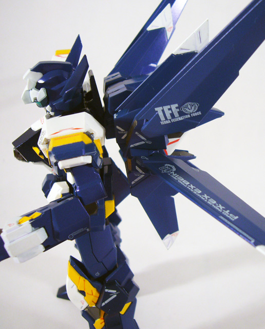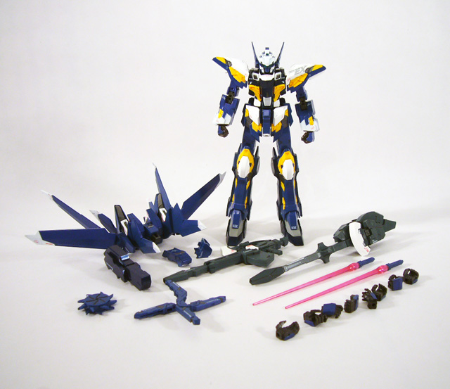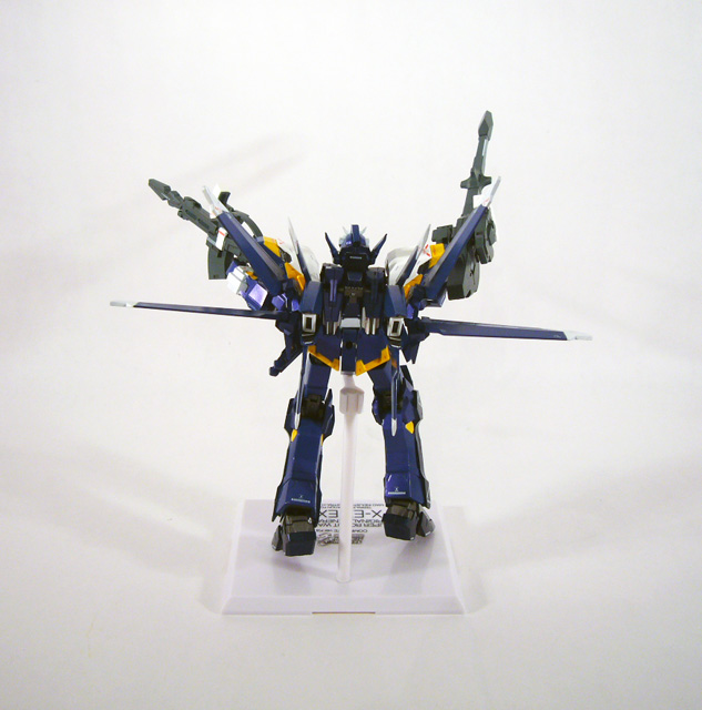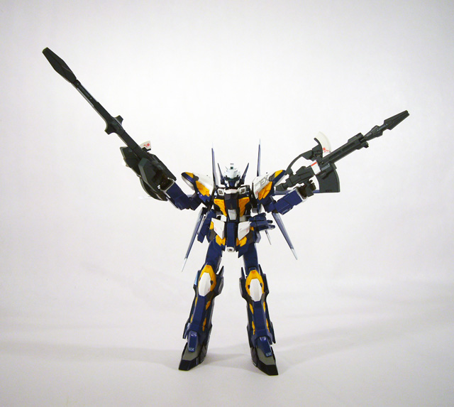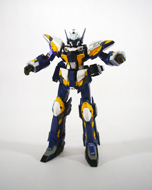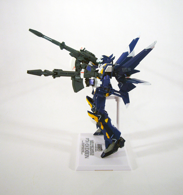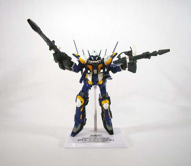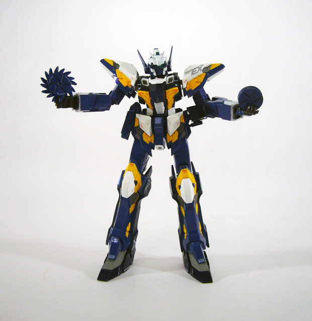 When it comes down to displaying your Exbein, there are two more important things to discuss. First is articulation. Bandai’s robot figures are well known for their poseability and the Exbein doesn’t disappoint with a full set of joints including ball and double joints. The only notable things beyond that are the feet with two ball joints (toe and ankle section) and the individually pivoting shoulder armor. Finally, the Exbein has awesome accessories. There aren’t too many (like some Gundams with more weapons than you’ll ever use), but just the right amount.