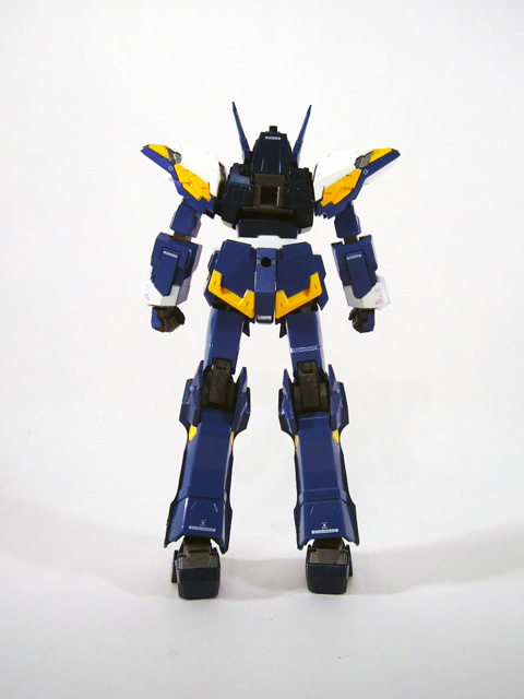 The Exbein’s arms are relatively thin and blocky, but even the forearm armor has interesting angles and panels (which will come into play later). Finally, the robot’s head is really cool, and what caught my eye in the beginning. It’s sort of reminiscent of a Transformer with a facemask and “eyes” underneath a large pair of goggles with translucent lenses. Around that is a heavily armored “helmet” that again has lots of small sculpted details. The only thing that’s not quite up to the overall level of quality is the back of the robot; the Exbein has very little detail on its dorsal surface, so make sure it’s facing forward in your display.