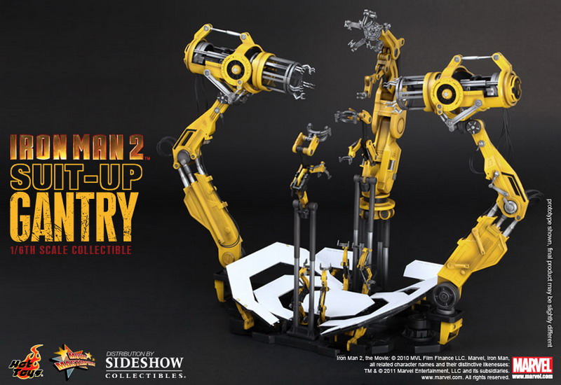 The Suit-Up Gantry with Iron Man Mark IV 12 inch Figure Set is now available for pre-order through Sideshow Collectibles priced at $499.99 and scheduled to arrive 1st quarter 2012. FLEXPay is available as a payment option.