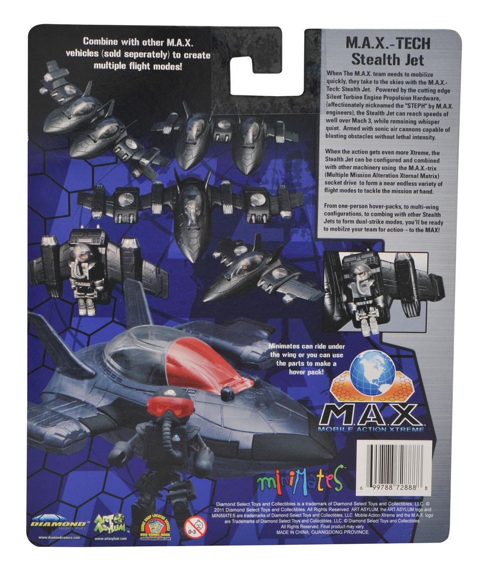 Look for the newest recruits to the MAX team at Toys"R"Us in September, along with their latest vehicle, a translucent black MAX Tech stealth jet, in the Minimates Vehicles line.