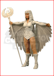 This is an all-white redeco of the Sorceress, as she was shown in the vintage mini-comic "The Temple of Darkness." She'll arrive with her white magic staff and new Orb of Grayskull stand (the Orb itself was included with our King Grayskull figure in fall 2010). This Sorceress will be Mattel's 2012 "traveling convention" figure, much like the three JLU 3-packs are for 2011. Mattel hasn't locked down the itinerary yet, but they expect NYCC and Power-Con to be two of the shows they attend in 2012. Any unsold units of this special redeco of the Sorceress will be sold on Mattycollector.com in late fall 2012, but you can get her first at Mattel's traveling shows. (NOTE: She will not be sold at SDCC or in any subscription.)