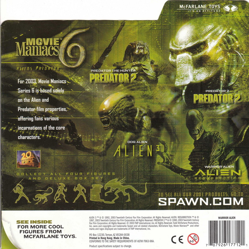 In its industry-changing beginnings, Movie Maniacs was an eclectic mix of horror icons. Jason, the Terminator and the Tooth Fairy in one assortment? No problemo. Part of the fun was guessing which cult classic films and characters McFarlane would introduce in each series. Series 6, however, took an unexpected turn with its release of ALL Aliens and Predators. While the wild variety in Series 6 was gone, the assortment was far from a failure. Fans had been clamoring for detailed figures of these creatures for some time, and until Hot Toys' and NECA's current releases, these were the best that money could buy. The crowning jewel in this assortment was the deluxe boxed set: The Alien Queen. I think I paid around $25 for her at the time, a bargain considering the Queen's towering size (this figure was HUGE!). Something like that on the market today would easily retail for $40. My, have times changed.