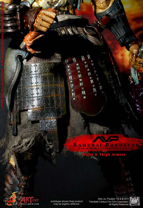 Hot Toys presents the 1:6th scale Samurai Predator the first figure in their new Artist Collection, a collaboration project with great collectible figure artists. The collectible is specially designed and painted by Mr. Takayuki Takeya and sculpted by Mr. Yuji Oniki from Japan featuring the Samurai Predator in warrior look, newly sculpted head and body with articulations, detailed accessories, weaponry and diorama base of Alien’s corpse.
