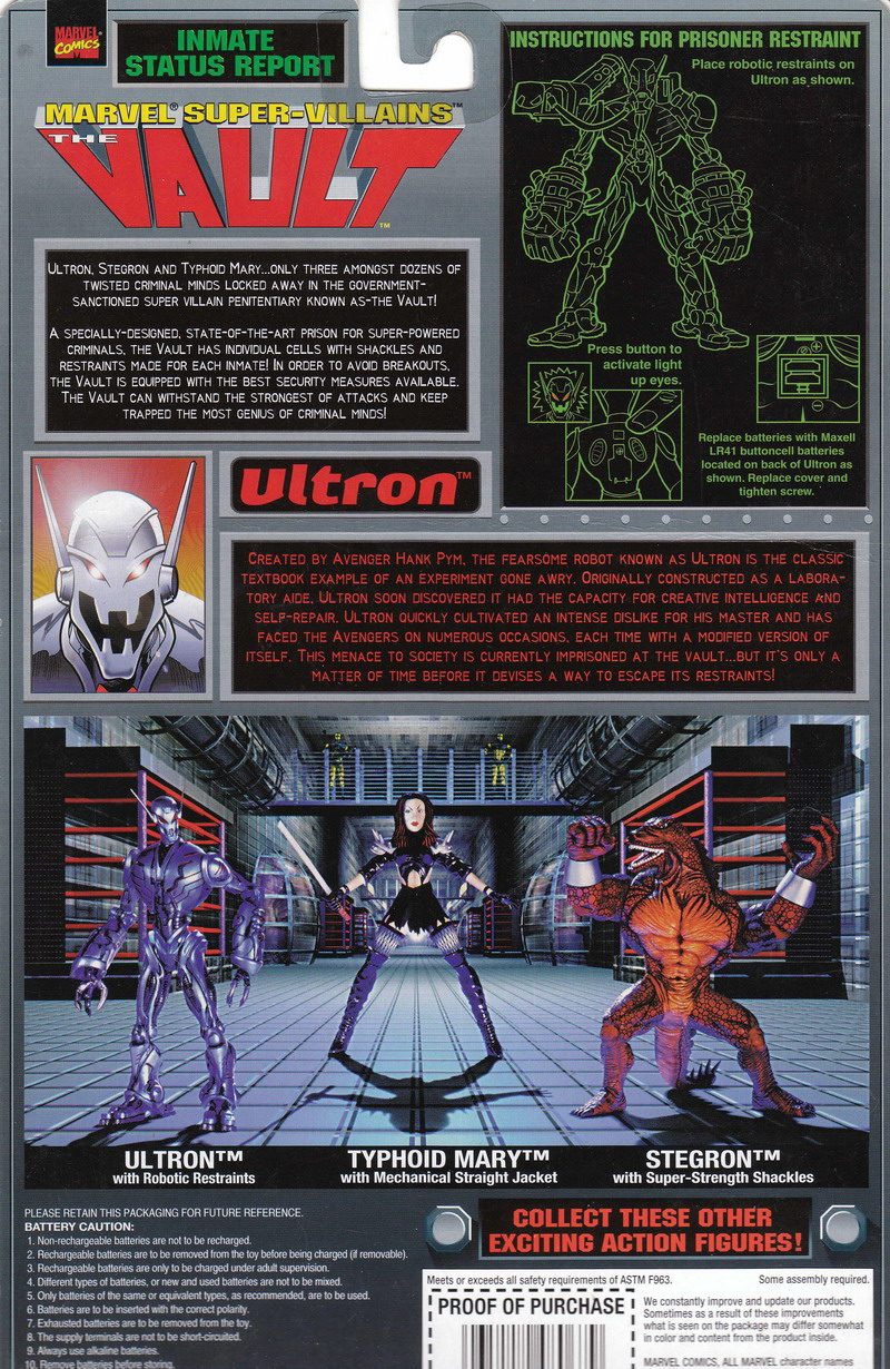 This was a small assortment based on Marvel's greatest super-villains locked up in the high-tech prison facility known as "The Vault". Thus the name of the series, if that's what you want to call it, as The Vault consisted of only three figures: Stegron, Typhoid Mary and Ultron. I picked Ultron because of my love for robots.
