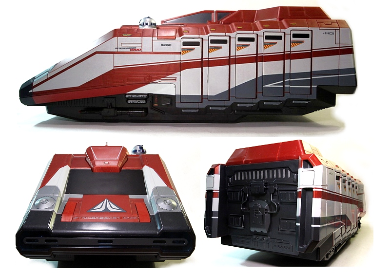 There’s a compartment for the IC-360 camera droid as well as a socket for R2-D2 or any astromech droid you desire to use. A button at the base triggers Artoo sound effects when pushed. Four buttons on the back of the SS1000 also perform certain tasks. The top left activates the left side doors and the top right button activates the same on the right. With a push of the button, the doors open and the familiar Star Tours chime can be heard. Press the button again to close. Interior cabin lights are turned on during this feature as well.