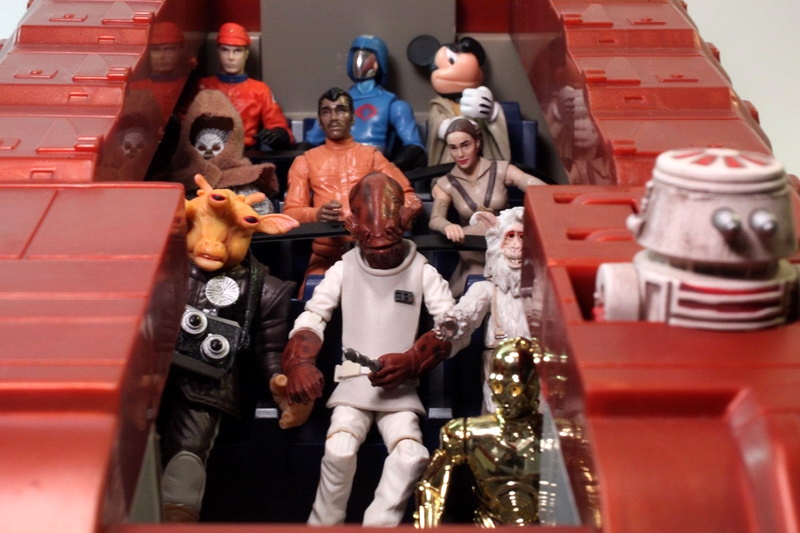 The backdrop art behind the ship is an interesting choice: Tatooine Podracing, reflecting one of the destinations in the ride. I think they could have gone with the Star Tours hangar and that would have worked out nicely too. Still, it’s great that they gave something and I actually saved that backdrop for my Hasbro Tatooine display.