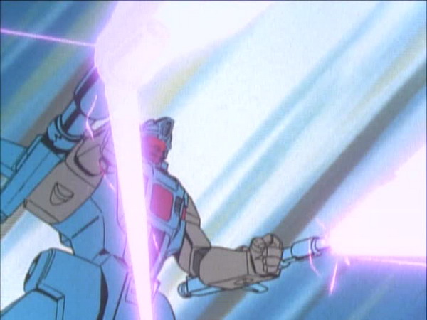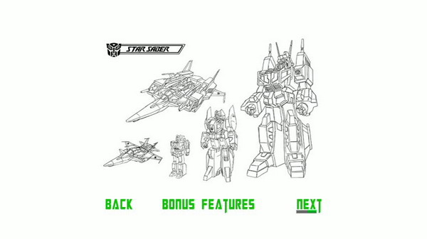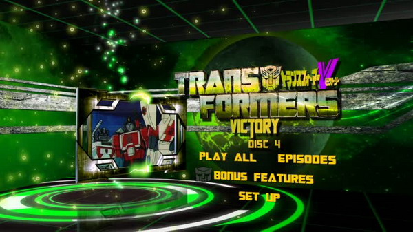 Transformers: The Japanese Collection comes packaged in the style you’ve come to know and love from Shout! Factory’s other TF releases. A sturdy outer box features a grayscale front cover depicting Victory’s Star Saber behind the set’s name; this matches the boxes used previously for their Transformers: Complete Series and Transformers Beast Wars: Complete Series. The side panel of the Japanese Collection is a more embellished version of the banner on the cover with the Transformers logo (complete with Autobot symbol) and titles of the three shows over a bluish star field. The back cover of the outer box has a brief history of the Transformers franchise, two small images, and a breakdown of the set’s features. Inside, you’ll find three DVD cases (one for each series) holding 4, 5, and 4 discs respectively. Each one has a full-color image on the front and stills with a description of the show on the back. Within the cases you’ll find episode breakdowns for each disc and even more imagery.