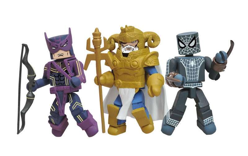 The Mighty box set (below) includes Asgardian All-Father (and Cul's brother) Odin, as well as Spider-Man, Hawkeye and Iron Man in their final battle costumes, with their dwarf-forged uru-metal weapons. (Iron Man not shown.)