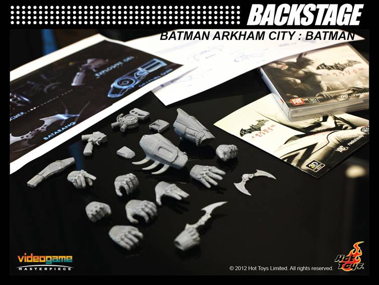 After introducing numerous 1:6th scale Batman figures as part of their Movie Masterpiece Series, Hot Toys announces that they will be adding to their Video Game Masterpiece Series with figures from Batman: Arkham City. Pictured below is a glimpse at some prototype parts of the upcoming Arkham City Batman figure. More details to come, stay tuned...