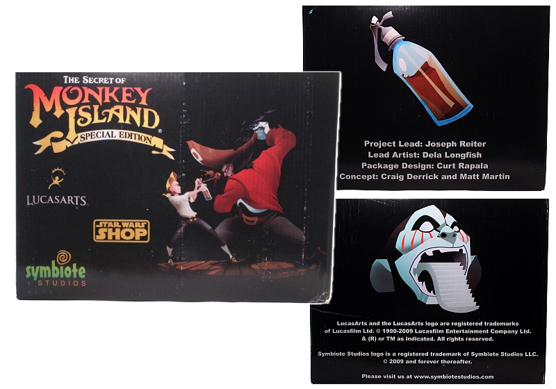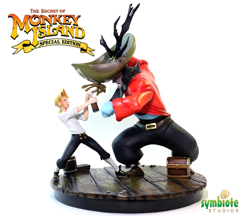 With The Secret of Monkey Island Special Edition, LucasArts took a 20-year old game and re-energized, refreshed, and redesigned it to be better than ever... all while remaining true to the classic game that gamers fell in love with in the 90's. Symbiote Studios took the opportunity with the updated game and created a colorful statue for Star Wars Shop. The epic battle between our hero Guybrush Threepwood and the evil ghost Pirate LeChuck is captured in stunning detail and is the perfect display piece for fans of the beloved game.
