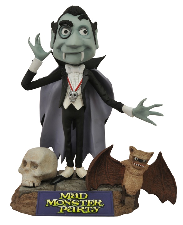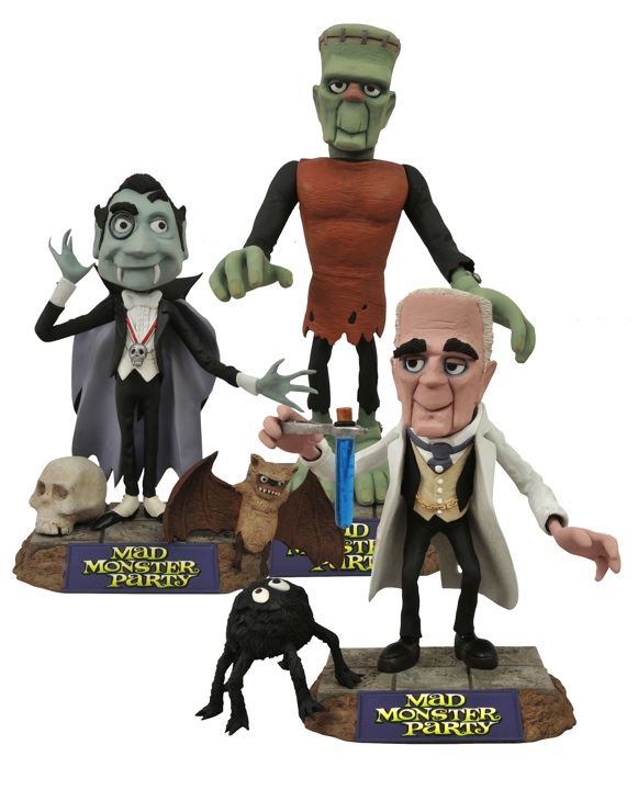 As announced back with our Toy Fair coverage (HERE), Diamond Select Toys will be releasing 7" scale action figures based on the 1967 Rankin/Bass stop-motion feature film Mad Monster Party. The first three Mad Monster Party action figures will include Dracula, Fang and The Baron, who was based on the likeness of his vocal performer (and horror legend) Boris Karloff. Each figure is sculpted by MMP afficianado Tony Cipriano, and will come in its own display-ready collector packaging with a groovy display base and plenty of accessories.