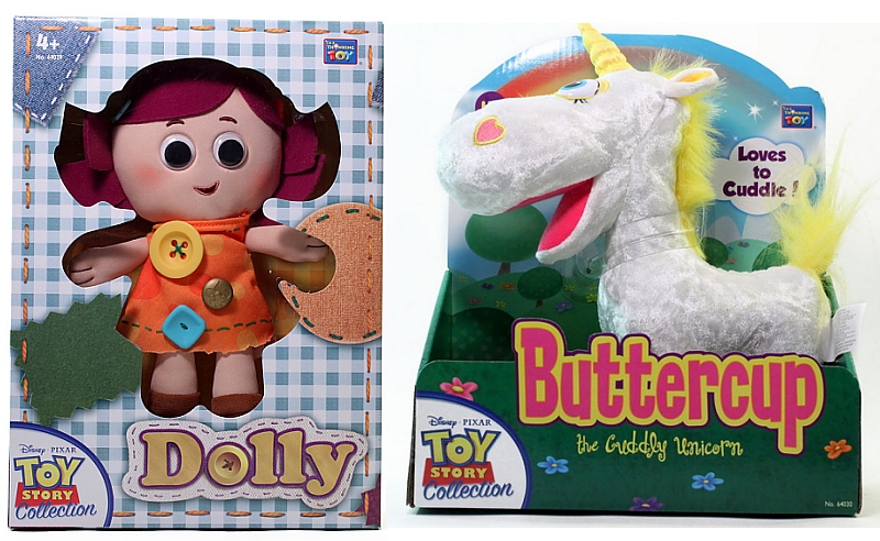 The Academy Award-winning film Toy Story 3 almost feels like ancient history and for most fans, it’s been a long time since Thinkway has given its fans more characters to flesh out their collection. For fans in the U.S.A., the wait was especially long since Thinkway did indeed create a new batch from Toy Story 3: Dolly, Buttercup, and Mr. Pricklepants, but sold them ONLY in the U.K. Well Americans, you can rest at long last because the latest members of the Toy Story family can be found at your local Disney Store. Today we’ll take a look at Dolly & Buttercup, both retailing for about $29.50.