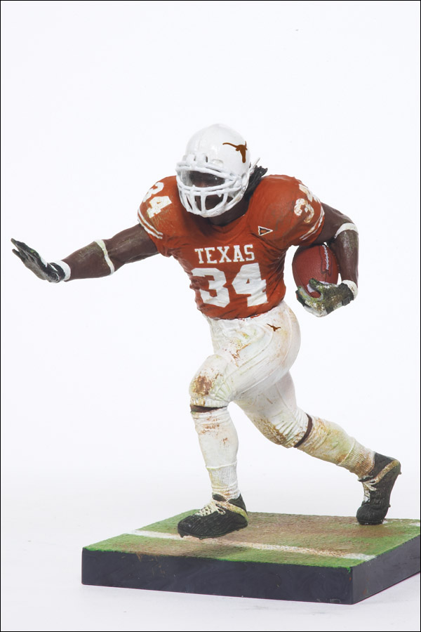 McFarlane Toys has released new photography of College Football Series 4. Slated for release in July, College Football Series 4 boasts an unprecedented five Heisman Trophy winners and two Heisman finalists, including the first NFL Legend and the first figure from the University of Texas. Look for (pictured in order top to bottom): Cam Newton, Champ Bailey, Marcus Allen, Peyton Manning, Ricky Williams, Sam Bradford, and Tim Tebow.