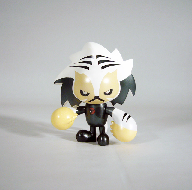 The first Thundercraps, Lion-Oh Really and Tigrowl, were released as SDCC exclusives last year and subsequently a small run of artist proofs online. At Anime Expo last week Kuso Vinyl debuted a new box set of three figures: Succumb to the Dark Side Evil Lion-Oh Really, Winter Wrap-Up Siberian Tigrowl, and Cheatarah. The first two are “repaints” of the initial figure releases in darker palettes while Cheatarah is an all-new design. She came in two versions, the OG Colorway in orange (depicted here) and a “chase” metallic Show Me the Money Honey Goldigger variant.