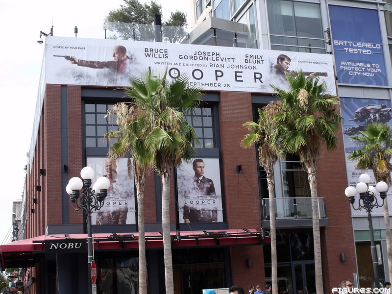 Aside from banners and posters all over the convention grounds, a Looper display inside showed off an odd hover bike and cool weapons from the movie. Check out more photos HERE.