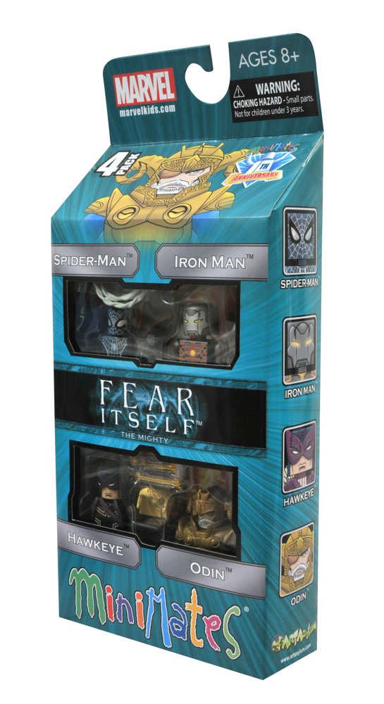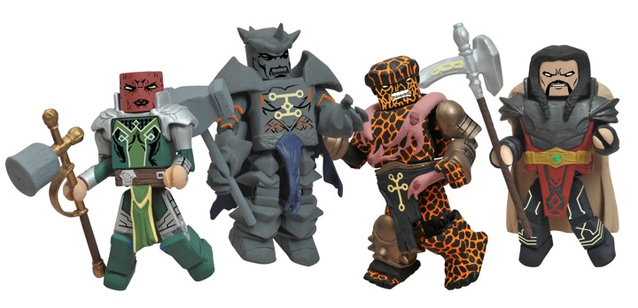 To commemorate the Earth-shattering Marvel storyline, Diamond Select Toys is releasing two box sets of Minimates! The Worthy box set includes Cul, The Serpent (the Asgardian god of fear); his herald Skadi (a.k.a Sin, the Red Skull's daughter); Mokk, Breaker of Faith (formerly the Grey Gargoyle); and Angrir, Breaker of Souls (formerly the ever-lovin' blue-eyed Thing). Each comes with a massive hammer, and the Serpent also comes with his staff.