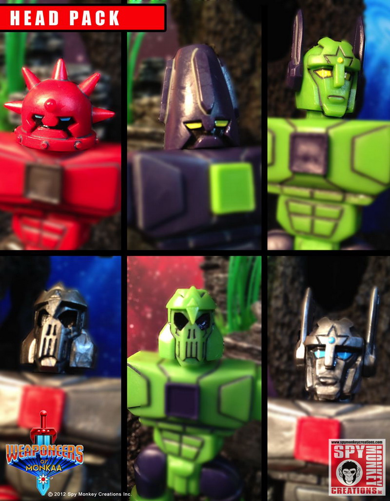 Additionally a special Weaponeers of Monkaa Extra Head Pack is available which includes 6 character heads in colorways available nowhere else! Each pack includes 10 interchangeable parts. $5.00 each.