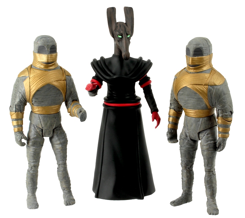 In this adventure starring the Fourth Doctor (Tom Baker), the TARDIS materialises on Earth in the year 1911 inside an old priory owned by Egyptologist Marcus Scarman. Scarman has been possessed by Sutekh, last survivor of the god-like Osirans, who is held prisoner under a pyramid in Egypt by a signal transmitted from one on Mars. Sutekh desires his freedom and instructs Scarman to construct servicer robots - which look like Egyptian mummies - to build a missile with which to destroy the Martian pyramid. The Doctor foils this plan by blowing up the missile.