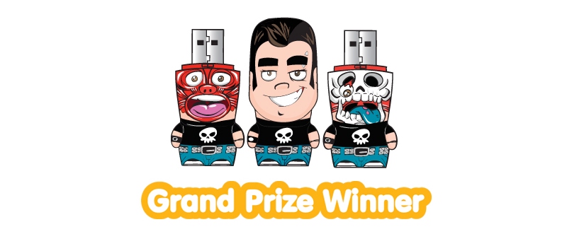 Winning design, “No Face Dave” by American designer David Galvan, is the MIMOBOT that won’t stay dead. Beneath the cap, his skeleton face with dangling eyeball and blue tongue, or the pink-tongued alternate skinless zombie face is revealed. Once masked, Dave has a cheesy smile, eyebrow ring, tattooed arms and baggy jeans.