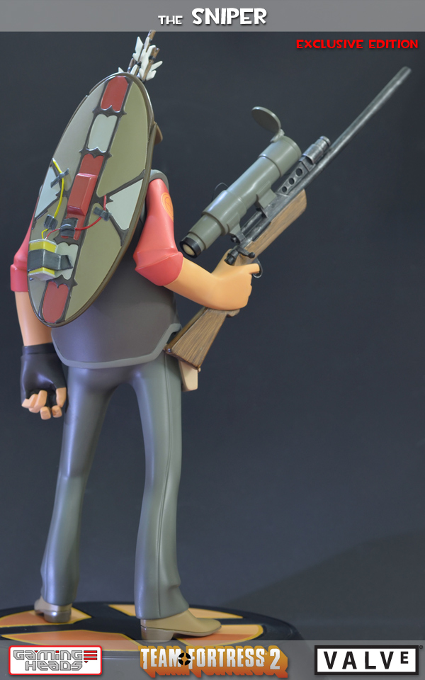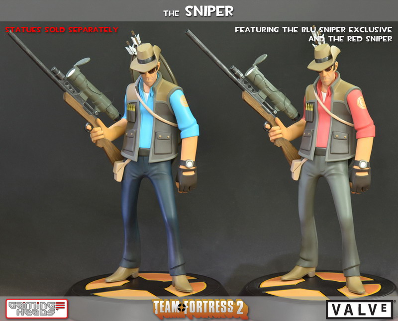 As announced yesterday, Gaming Heads continues to represent the characters of Team Fortress 2 in fine statue form with their latest release: The Sniper. Following Heavy, Medic and The Soldier, the 14-inch tall Sniper statue is being offered exclusively at GamingHeads.com in both Team Red and Blu colors. The regular editions of each team color are priced at $219.99 and limited to 750 pieces. Meanwhile, the exclusive versions - which come with an additional piece, the Razorback! - are priced at $234.99 and limited to 350 pieces each. The Sniper is scheduled to ship in the second quarter of 2013.