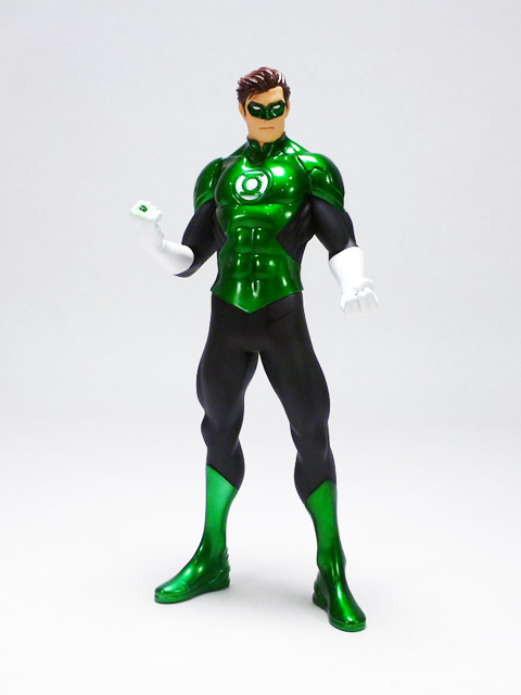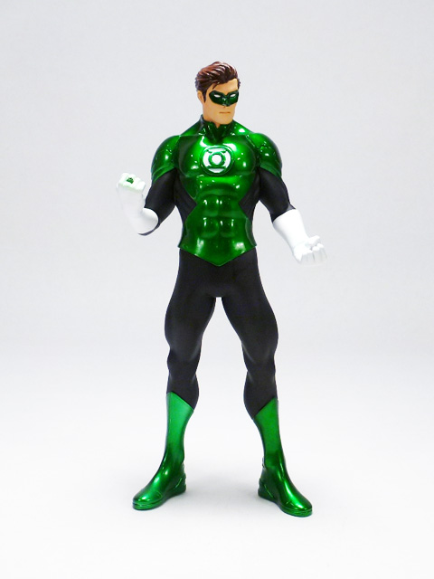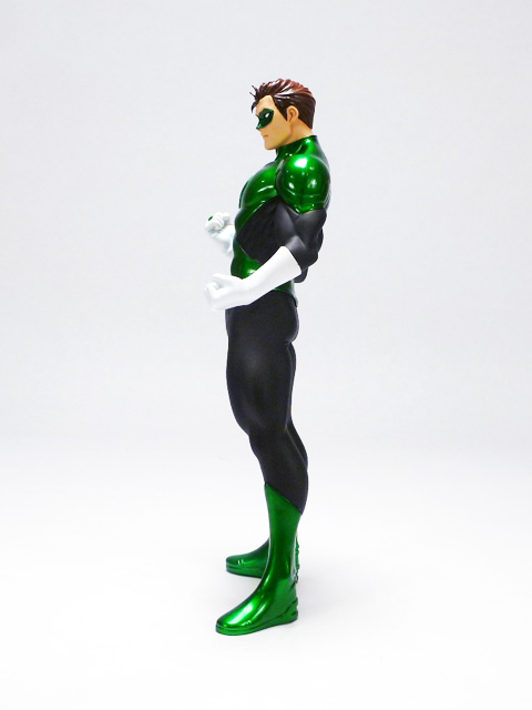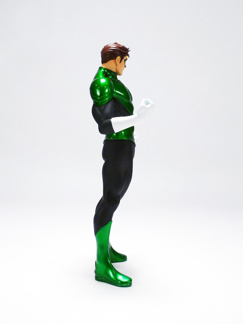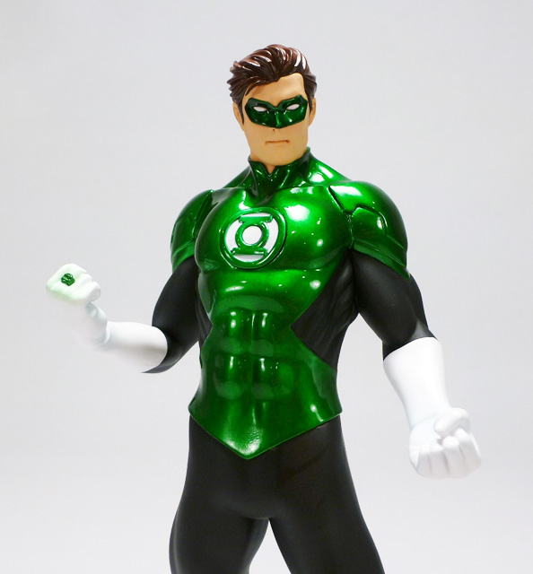 While there’s plenty to enjoy on the sculpts, it’s the paint that really brings them to life. Koto fully embraced a bright metallic look for these statues, a risky decision that really paid off. Superman is resplendent in a bright silvery blue that’s offset nicely by the metallic red and yellow of his “S” emblem and the red on his boots, belt, cuffs, and collar. Meanwhile, Clark’s cape is a matte red with black emblem on the back. Naturally, Superman has jet black hair and dark eyes. Green Lantern also benefits from a metallic look, though his is a little less splashy. The black sections of his uniform are matte, and the white gloves have a bit of a sheen to them; the green, however, is a deep metallic hue that looks almost like liquid, and it’s especially effective on the statue’s mask. Hal’s eyes are white to match the color on his chest emblem, and his hair is a uniform medium brown.