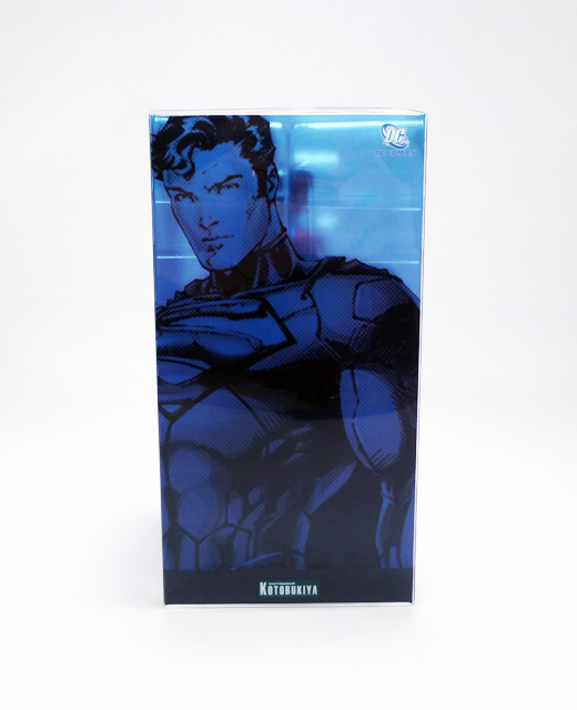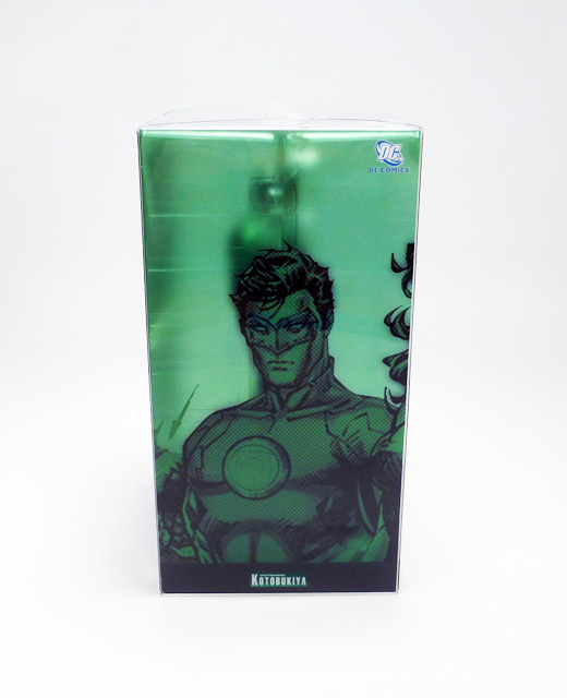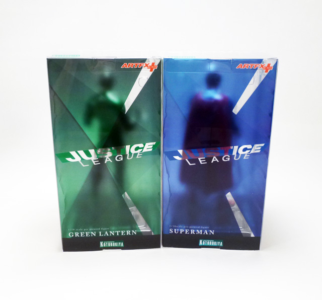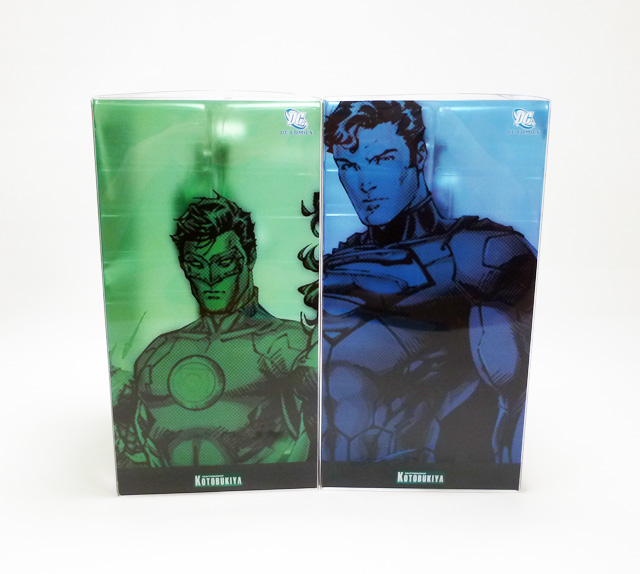 The back panel has a frosted “splash page” look with the Justice League title in front of a character color-specific angular design; this side also has a prominent ARTFX+ logo at the top. The other side panel is a snapshot of the character’s place in the original Jim Lee artwork, again frosted in a color specific to the character (green for GL and blue for Superman). While I open all of my figures and statues, this is one of the rare instances when I can actually envision displaying them in the box; they really look that good.