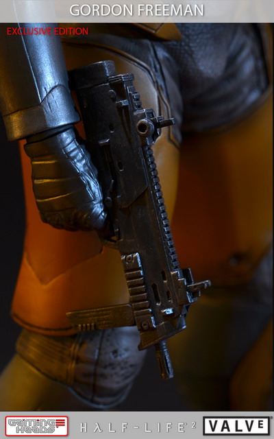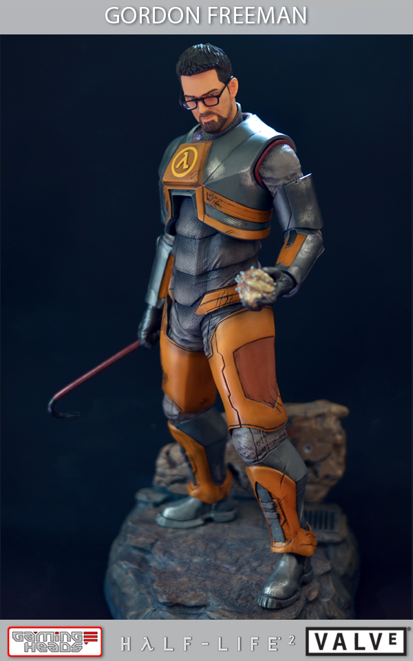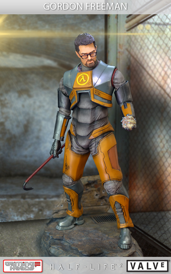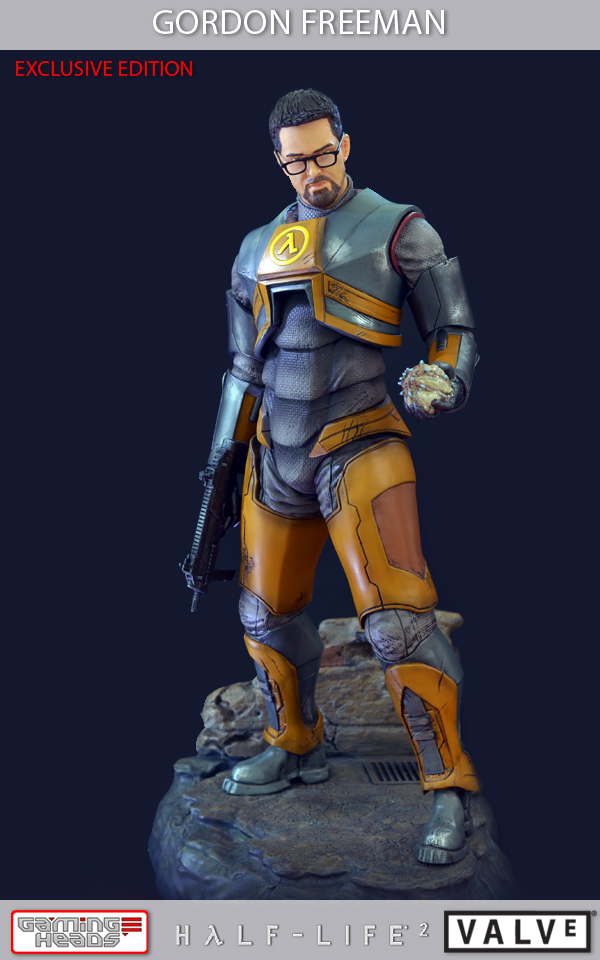 Gaming Heads presents their latest licensed Valve video game statue: Gordon Freeman, the hero of the Half-Life series. Measuring approximately 20 inches tall, including the base (1/4 scale), Gordon comes in both a standard edition with his trademark crowbar ($319.99 and limited to 1000 pieces) and an exclusive edition packing an additional switch out weapon, the MP-7 ($339.99 and limited to 500 pieces). Both versions feature Gordon gripping Bugbait in his right hand.